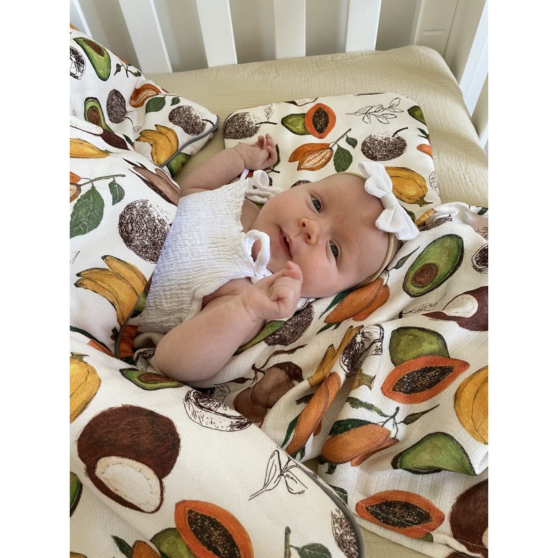 Pieluszka z bambusa Coco&Banana ma wymiary 75x75 cm i z racji pięknego, uniwersalnego nadruku w ręcznie malowane owoce dedykowana jest wszystkim maluszkom. Trwały materiał zachowuje swoje wszystkie właściwości nawet wielokrotnym praniu, a z biegiem czasu pieluszki stają się jeszcze bardziej delikatne