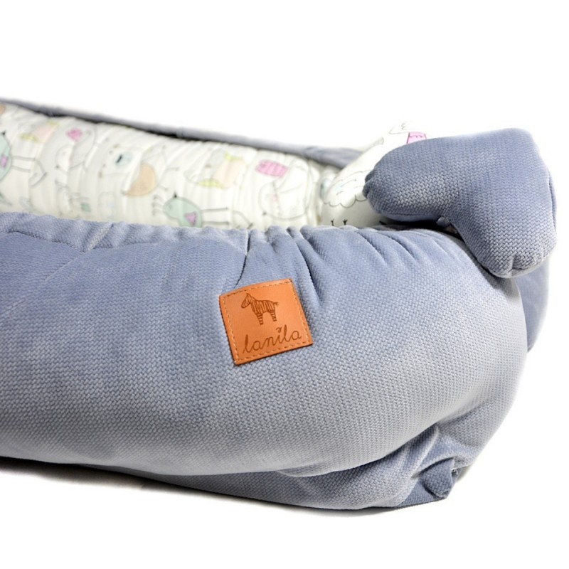 Kokony marki Lanila są bardzo stabilne, więc można używać ich na łóżku, kanapie, fotelu lub w dowolnym miejscu w domu lub na zewnątrz. Świetnie sprawdzą się na wakacjach, podczas wizyt u znajomych lub rodzinnych pikników. Dzięki stabilności zabezpieczą Niemowlaka przed spadnięciem z łóżka czy kanapyWykonane zostały z wysokiej jakości bawełny satynowej oraz przyjemnej i delikatnej w dotyku dzianiny Velvet. Dodatkowo od spodu nasze kokony posiadają zapinaną na zamek błyskawiczny kieszeń, w której znajduje się wyjmowany dolny wkład – w każdej chwili, gdy kojec się zabrudzi w bardzo szybki sposób można otworzyć kieszeń, wyjąć wkład, a cały kokon po prostu wrzucić do pralki. Wkład to wysokiej jakości miękka, a zarazem stabilna pianka, która nie odkształca się nawet po wielokrotnym użytkowaniu. Pianka obszyta została delikatną włókniną, która ułatwia włożenie jej z powrotem do środka.