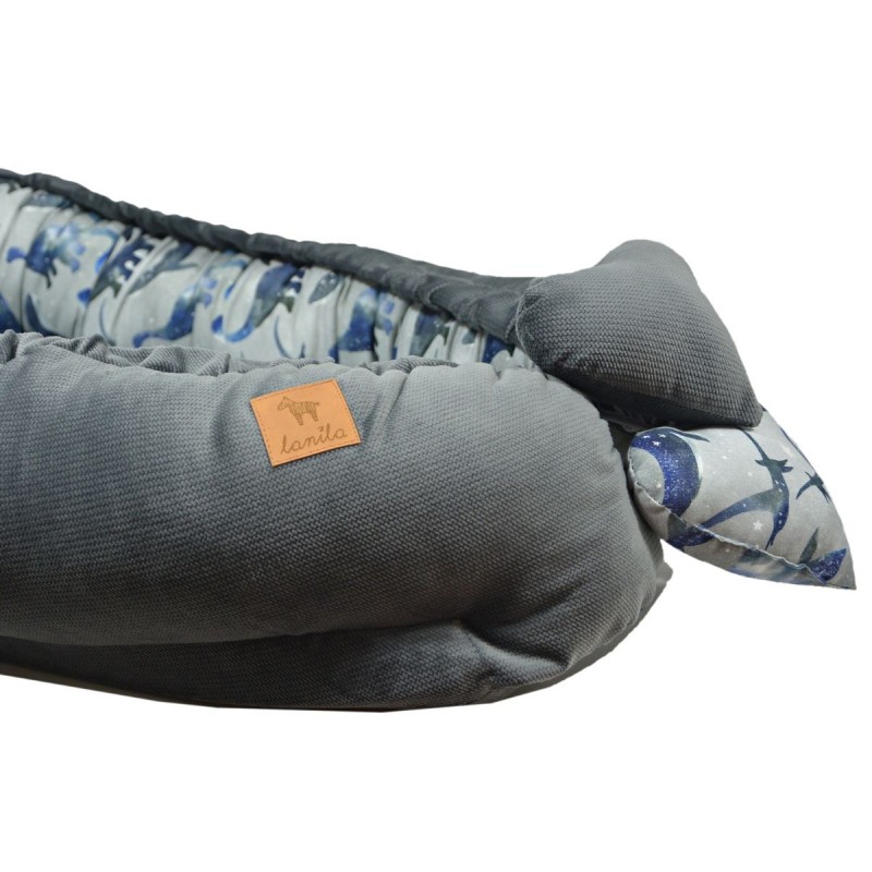 Niezwykle stabilny oraz funkcjonalny kokon dla noworodków i niemowląt Velvet z kolekcji Dark Grey Dreaming Dino. Kokon wykonany został z najwyższej jakości bawełny satynowej oraz delikatnego Velvetu.
