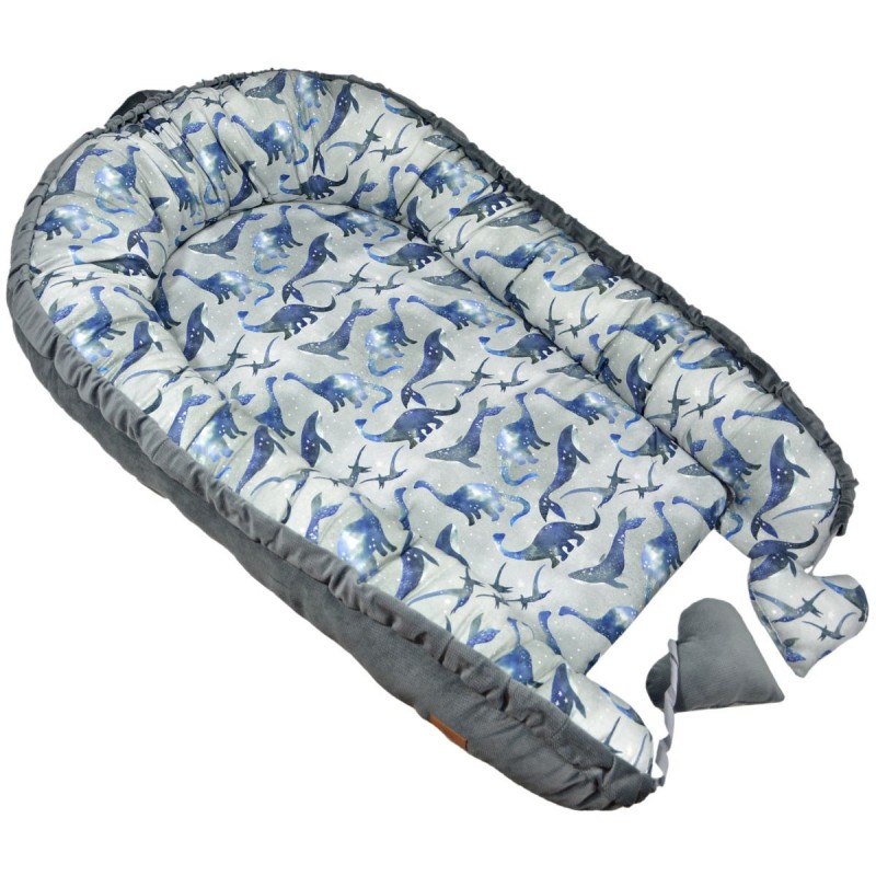Baby Nest Dark Grey Dreaming Dino - Velvet