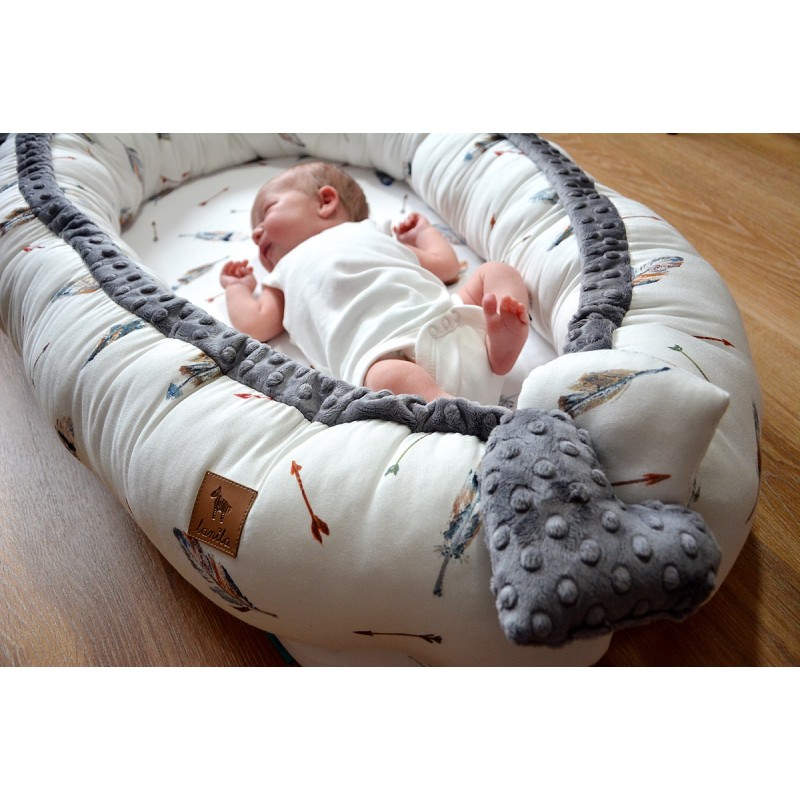 Kokony marki Lanila są bardzo stabilne, więc można używać ich na łóżku, kanapie, fotelu lub w dowolnym miejscu w domu lub na zewnątrz. Świetnie sprawdzą się na wakacjach, podczas wizyt u znajomych lub rodzinnych pikników. Dzięki stabilności zabezpieczą Niemowlaka przed spadnięciem z łóżka czy kanapy! Wykonane zostały z wysokiej jakości bawełny satynowej oraz wysokiej jakości polaru Minky. Dodatkowo od spodu nasze kokony posiadają zapinaną na zamek błyskawiczny kieszeń, w której znajduje się wyjmowany dolny wkład – w każdej chwili, gdy kojec się zabrudzi w bardzo szybki sposób można otworzyć kieszeń, wyjąć wkład, a cały kokon po prostu wrzucić do pralki. Wkład to wysokiej jakości miękka, a zarazem stabilna pianka, która nie odkształca się nawet po wielokrotnym użytkowaniu. Pianka obszyta została delikatną włókniną, która ułatwia włożenie jej z powrotem do środka.