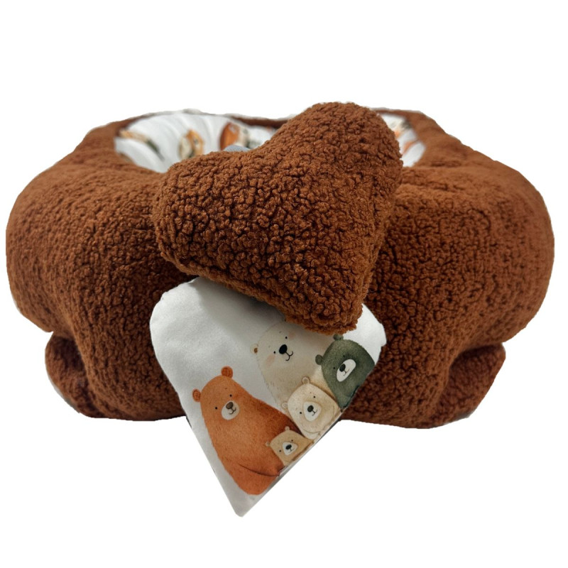 Każdy kokon Lanila dookoła posiada wytrzymałą taśmę, która umożliwia regulację wielkości całego zestawu. Na jej końcach umieściliśmy urocze serduszka – jedno z Baranka, a drugie z bawełny satynowej. Tunel, w którym umieszczona jest tasiemka wykonany został z Baranka nadając całemu kokonowi niezwykłego uroku oraz stylu!