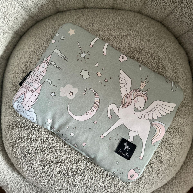 Poduszka dla dziecka Fairyland w całości wykonana została z miękkiej, atestowanej bawełny satynowej z trwałym nadrukiem. Wypełnienie stanowi hypoalergiczny puch – jego puszysta, a zarazem cienka warstwa sprawia, że poduszka niemowlęca jest elastyczna i płaska, dzięki czemu może zapewnić dziecku pełną wygodę w każdej sytuacji. Poduszka dla noworodka idealnie sprawdzi się podczas pierwszych miesięcy życia dziecka jako płaska, a zarazem miękka podpórka szyi i główki niemowlaka w łóżeczku. Dzięki swoim kompaktowym wymiarom będzie idealna również jako poduszka do gondoli i do fotelika samochodowego.