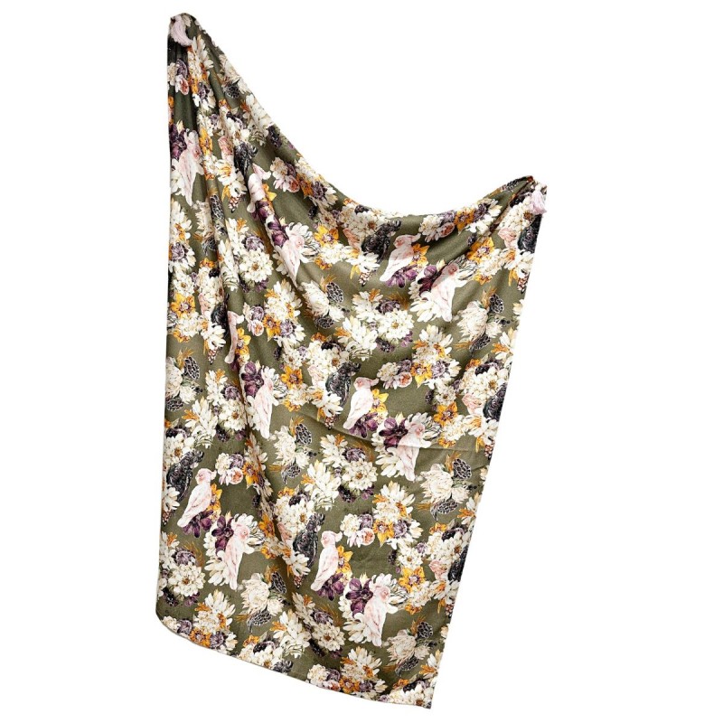 Bamboo Swaddle 100x120cm with fringes Pink Hello Parrots