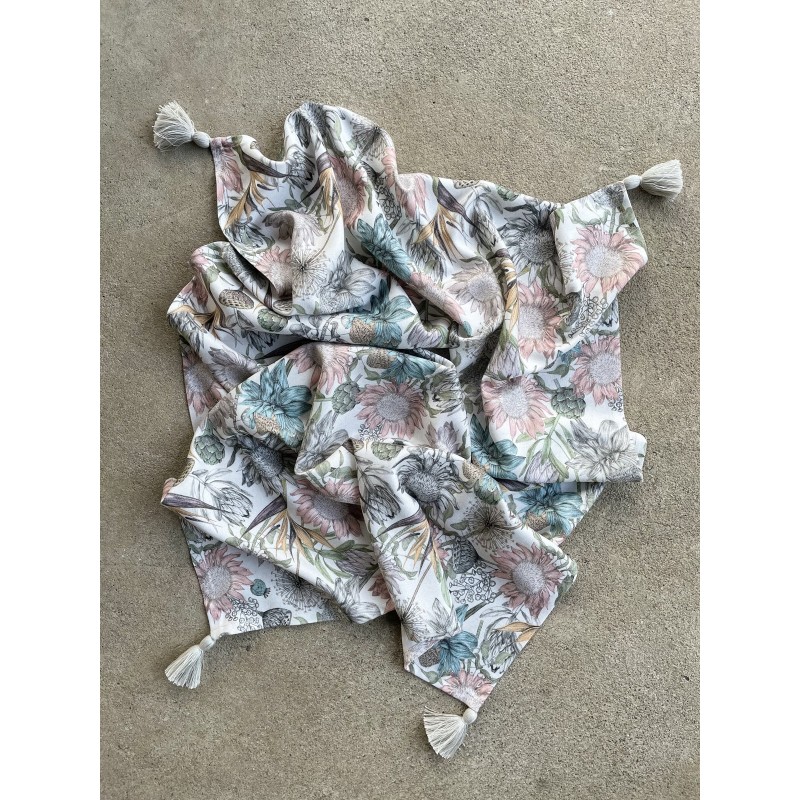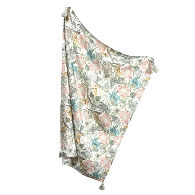 Bamboo Swaddle 75x100cm with fringes Grey Vintage Meadow