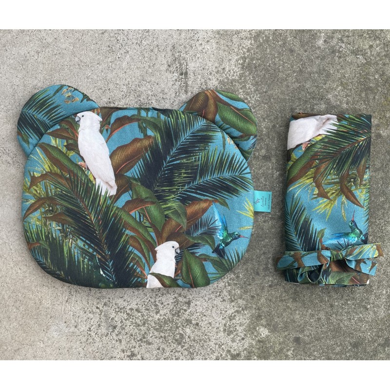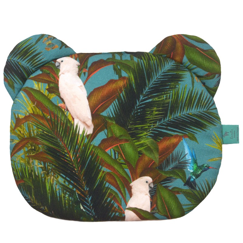 Bambusowa Poduszka Miś z kolekcji Tropical to pierwsza, bezpieczna i przede wszystkim płaska poduszka dla Twojego Malucha. Zawadiackie uszy również uszyte z tkaniny bambusowej mogą służyć jako ulubiony gryzaczek Niemowlaka.