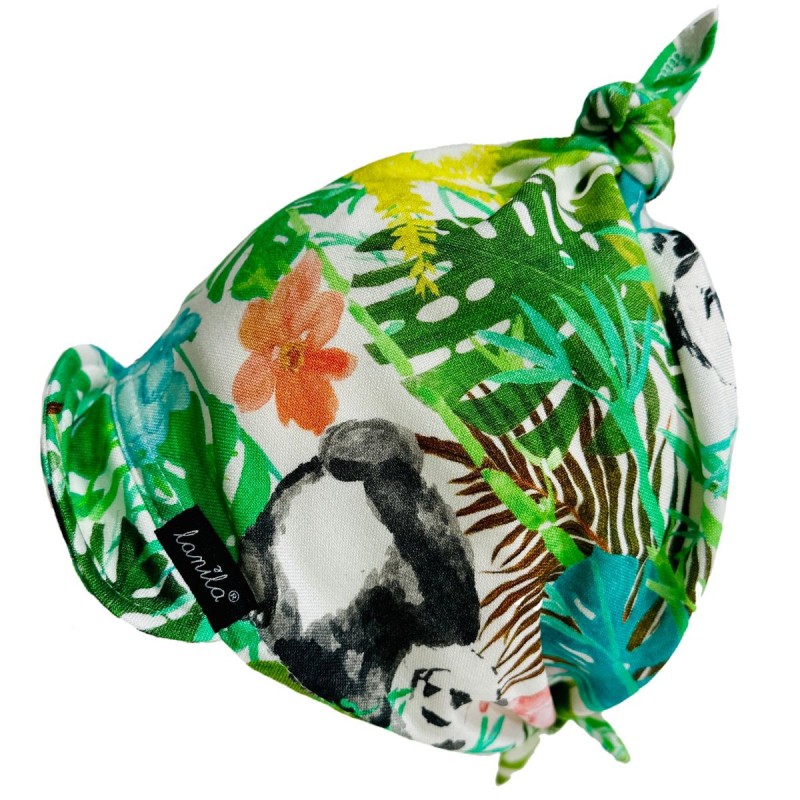 Bambusowa Chusta na głowę z daszkiem Jungle Bears w całości wykonana została z miękkiej, atestowanej tkaniny bambusowej z trwałym nadrukiem. Idealnie ochroni główkę dziecka przed przegrzaniem, a dzięki wykorzystaniu bardzo miękkiej tkaniny nie spowoduje podrażnień oraz zapobiegnie przetarciom nawet na wrażliwej skórze Dziecka.