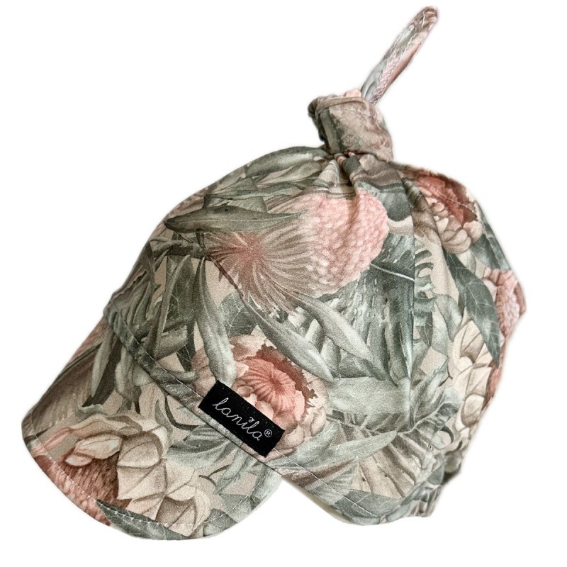 Chusta na głowę z gumką posiada wszytą wygodną gumę oraz dodatkowo jest wiązana w górnej części, dzięki czemu ma uniwersalną wielkość. Chusty z gumką występują w 2 rozmiarach, a dzięki wszytej gumie świetnie dopasowują się do głowy i pasują na dzieci od 4 miesięcy do ok. 6 lat. Daszek każdej chusty jest delikatnie usztywniany, więc w zależności od potrzeb może pozostać płaski lub można go podnieść do góry.