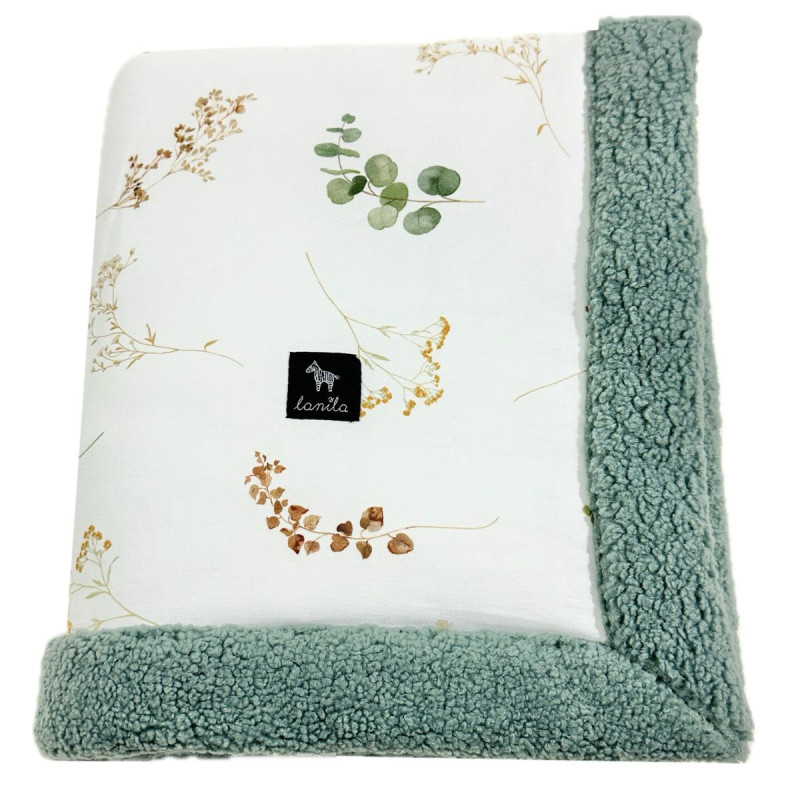 Newborn Blanket 60x70cm Olive Green Flora - Baranek