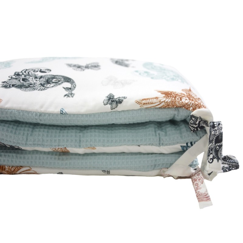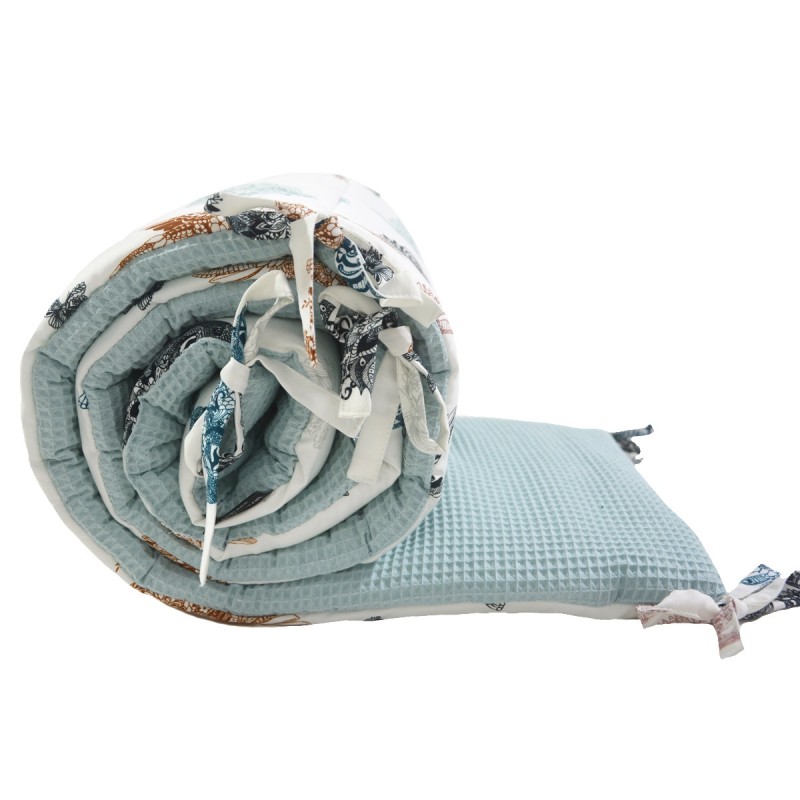 Bed Bumper 70x140cm - Waffel Pastel Mint Mandala Birds
