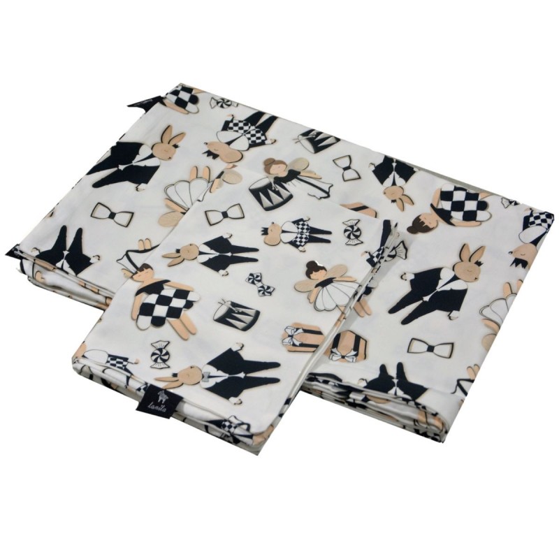 Zestaw pościeli dziecięcej Ladies and Gentlemen składa się z poszewki na kołdrę o wymiarach 90x120 cm oraz poszewki na poduszkę o wymiarach 40x60 cm. Dzięki najwyższej jakości wykonania i dużej dbałości o detale, pościel doskonale się układa i pięknie prezentuje w dziecięcym łóżeczku. Obie poszewki posiadają wygodne w użyciu zamki błyskawiczne, pozwalające szybko założyć je na kołdrę i poduszkę.
