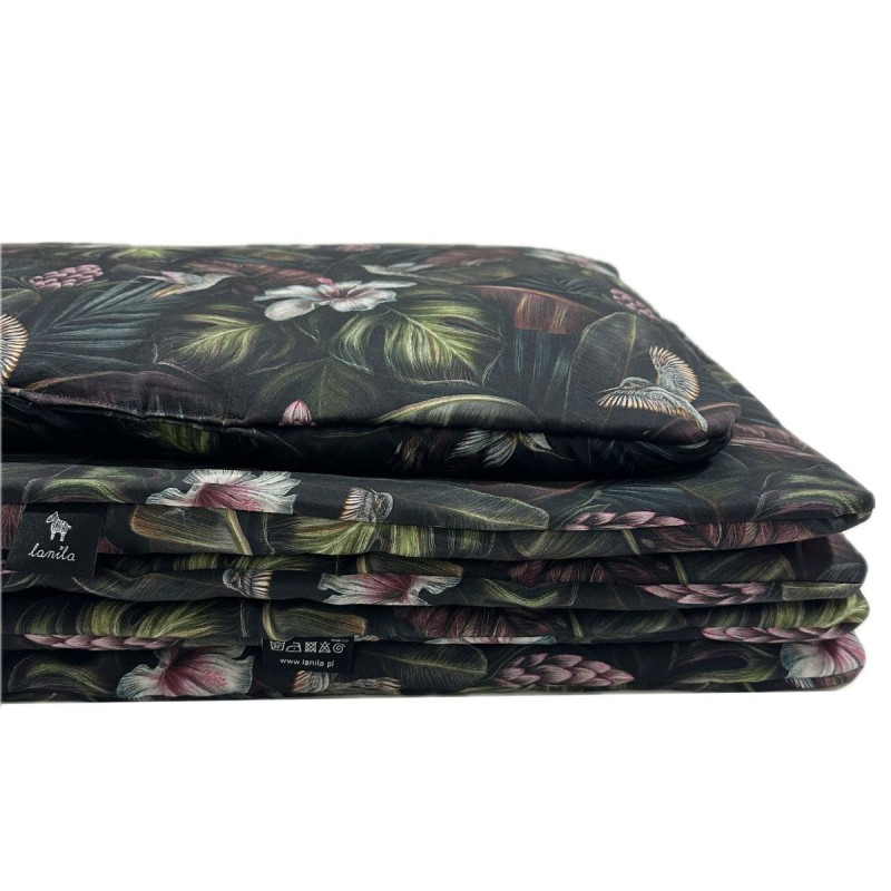 Bawełniany komplet pościeli z wypełnieniem to bezpieczna i wygodna alternatywa dla tradycyjnych poszewek. W skład kompletu wchodzi poduszka oraz kołderka z wszytym lekkim, antyalergicznym wypełnieniem.