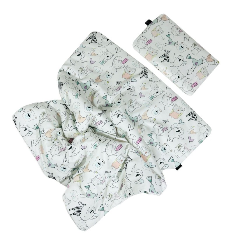 W skład kompletu wchodzi cienka, wypełniona włóknem silikonowym poduszka oraz kołdra z wszytym wypełnieniem. Wypełnienie to antyalergiczna włóknina silikonowa, która nie powoduje uczuleń.