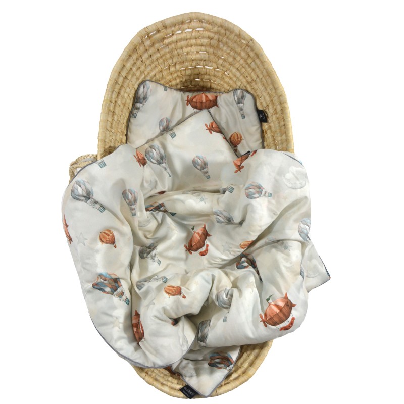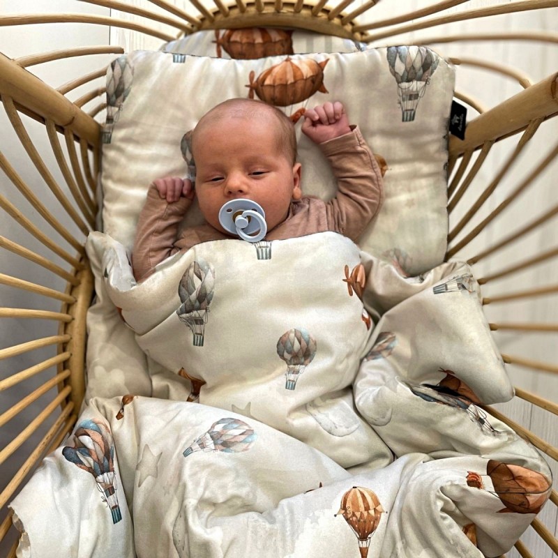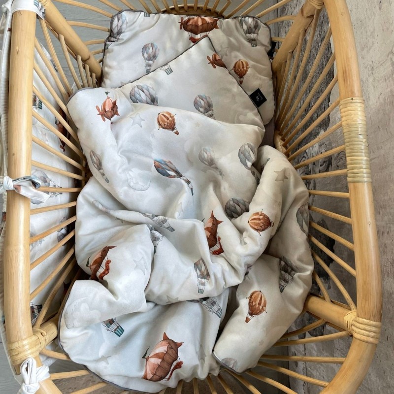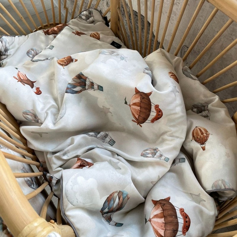 Bawełniany komplet pościeli z wypełnieniem to alternatywa dla zwykłych poszewek na pościel. Dzięki wszytemu wypełnieniu całość można wrzucić do pralki i wyprać nie tylko same poszewki, jak to bywa w tradycyjnych kołdrach ale również wypełnienie, zapewniając tym samym maksymalną czystość. Nie trzeba się również martwić czy wielkość poszewek będzie pasowała do kołdry i poduszki, którą akurat posiadacie – tutaj wypełnienie jest wszyte od wewnątrz do tkaniny, więc nie trzeba posiadać ani kołdry ani poduszki. Całość dostajecie w komplecie. Jest to fantastyczny pomysł na ważne okazje, jak prezent na chrzest czy wyprawka dla noworodka.