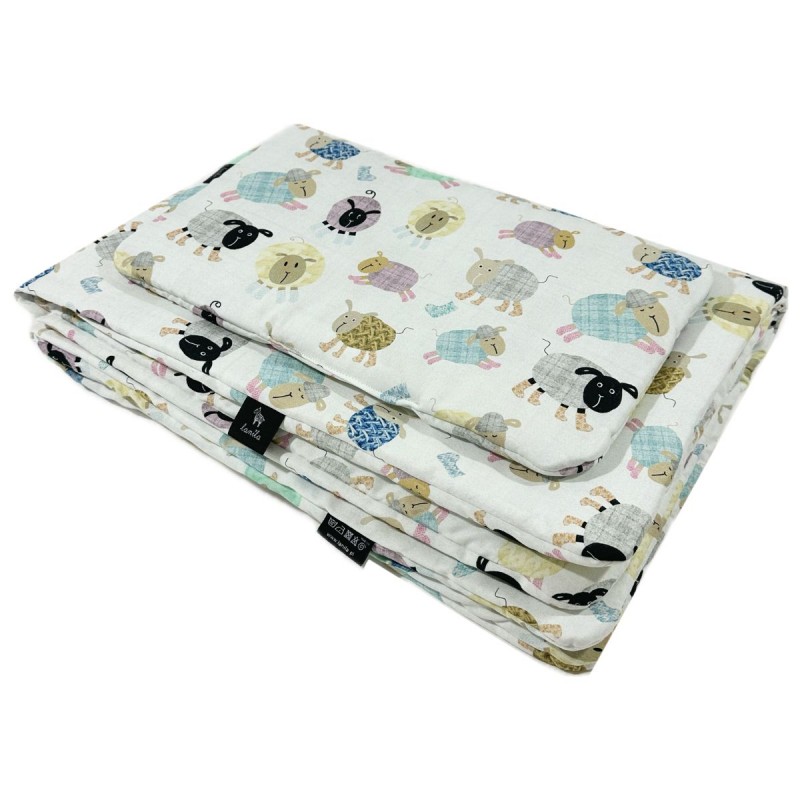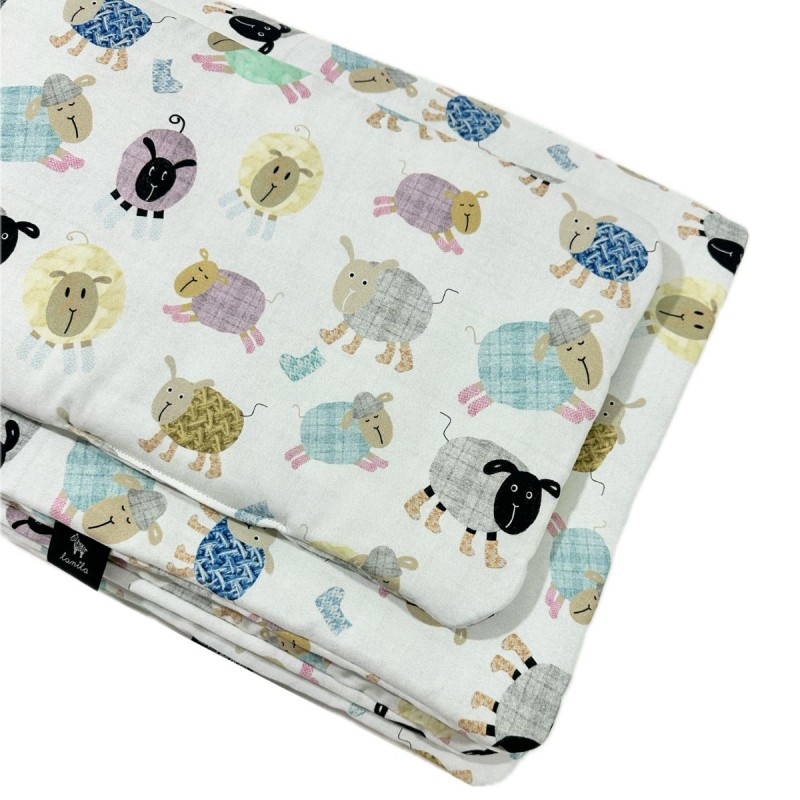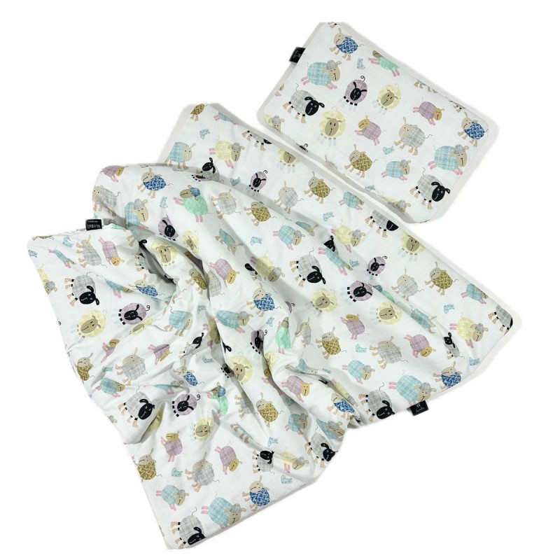 Bawełniany komplet pościeli z wypełnieniem to bezpieczna i wygodna alternatywa dla tradycyjnych poszewek. W skład kompletu wchodzi poduszka oraz kołderka z wszytym lekkim, antyalergicznym wypełnieniem.
