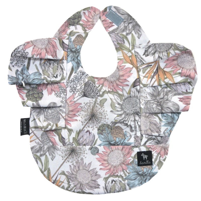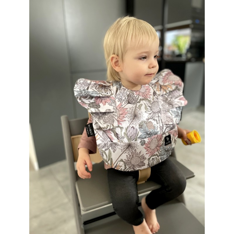 Unikalny wzór w ręcznie malowane kwiaty sprawia, że śliniaczek jest również śliczną ozdobą dla każdego malucha.