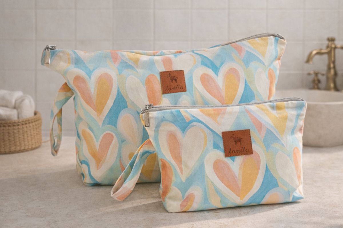 To, co wyróżnia kolekcję Pastel Amour, to autorski print zaprojektowany specjalnie dla Lanila. Każde serce zostało namalowane ręcznie, a następnie przeniesione na tkaninę w formie delikatnego, pastelowego wzoru.