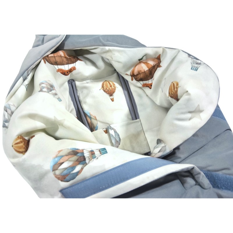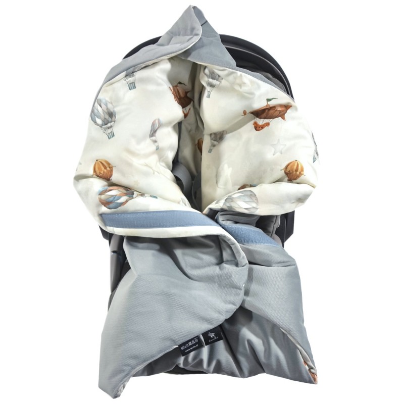Kocyk do fotelika samochodowego idealnie sprawdzi się już od pierwszych dni Maluszka podczas wyjścia ze szpitala. Kocyk do nosidełka posiada dwa długie pionowe otwory na pasy oraz dwa otwory na dolny pas biodrowy, dzięki czemu pasuje do większości fotelików samochodowych (0-13kg), nosidełek czy wózków. Zapinany jest na wygodny, szeroki rzep z dużą możliwością regulacji. Po zapięciu koca w górnej jego część powstaje kapturek, który również zapinany jest na rzep.