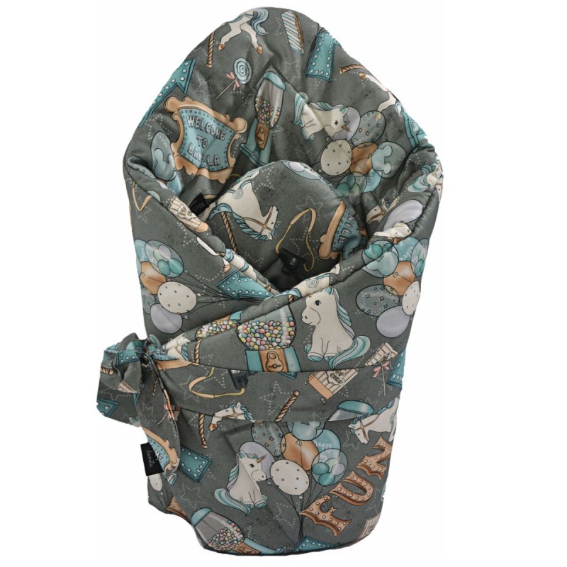 Rożek dla niemowlaka Baby Boy z obu stron wykonany został z miękkiej i delikatnej bawełny, zadrukowanej autorskim wzorem.