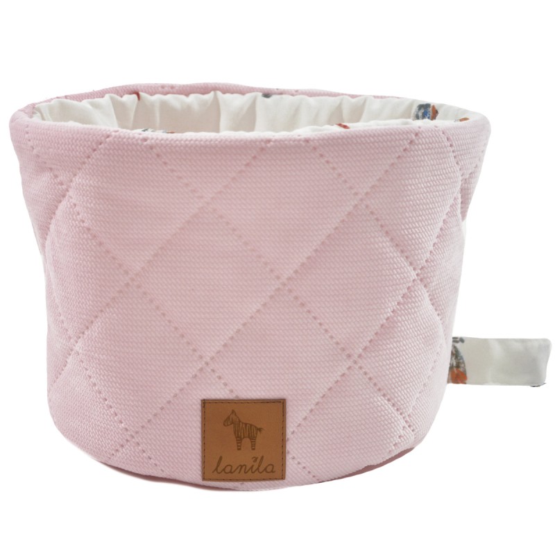 W skład zestawu wchodzą 2 pojemniki: jeden większy o wymiarach 21 x 29cm i wysokości 23cm oraz mniejszy o średnicy 19cm i wysokości 19cm. Pojemniki na akcesoria marki Lanila uszyte zostały z najwyższej jakości certyfikowanej bawełny oraz dzianiny Velvet. Środek to antyalergiczne, silikonowe wypełnienie, dzięki  czemu każdy pojemnik marki Lanila może być umieszczony w pokoju, w którym śpi niemowlę. Idealne do przechowywania pieluszek, szczotek, ubranek czy produktów do codziennej pielęgnacji Maluszka. Świetnie pasują jako praktyczne, a zarazem piękne dodatki do dziecięcego pokoju.