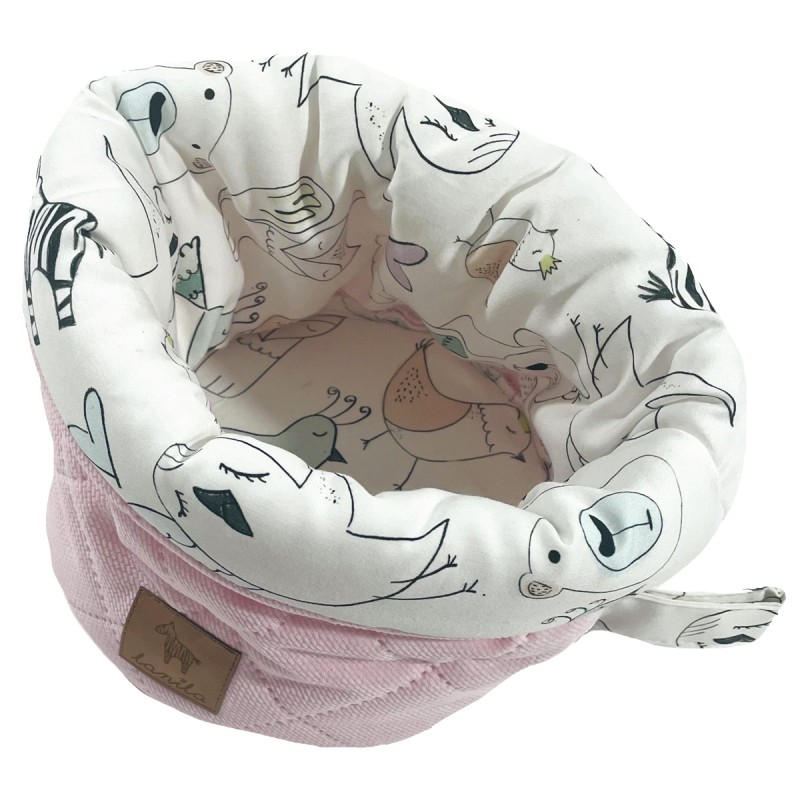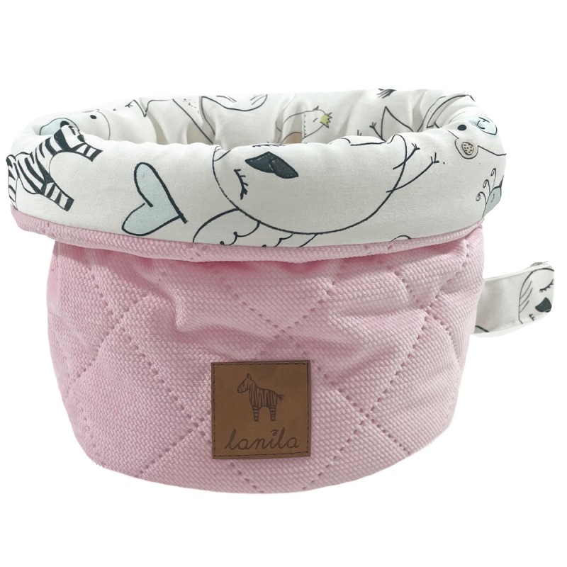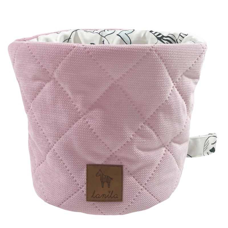 W skład zestawu wchodzą 2 pojemniki: jeden większy o wymiarach 21 x 29cm i wysokości 23cm oraz mniejszy o średnicy 19cm i wysokości 19cm. Pojemniki na akcesoria marki Lanila uszyte zostały z najwyższej jakości certyfikowanej bawełny oraz dzianiny Velvet. Środek to antyalergiczne, silikonowe wypełnienie, dzięki  czemu każdy pojemnik marki Lanila może być umieszczony w pokoju, w którym śpi niemowlę. Idealne do przechowywania pieluszek, szczotek, ubranek czy produktów do codziennej pielęgnacji Maluszka. Świetnie pasują jako praktyczne, a zarazem piękne dodatki do dziecięcego pokoju.