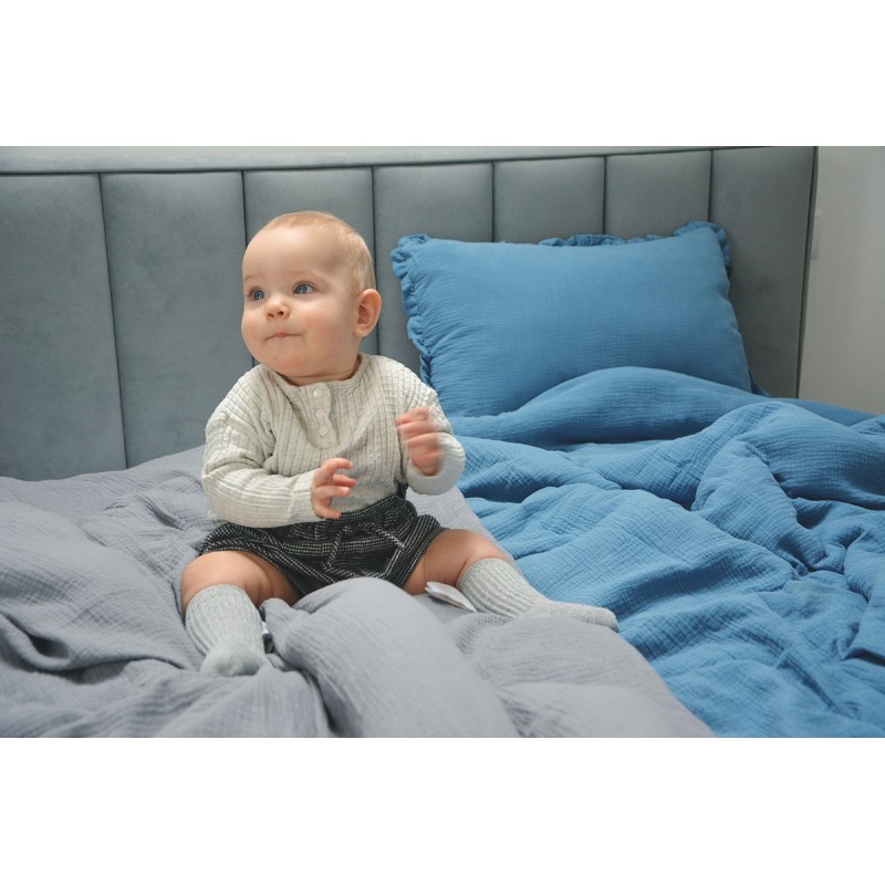Muślinowy komplet pościeli z wypełnieniem to alternatywa dla zwykłych poszewek na pościel. Dzięki wszytemu wypełnieniu całość można wrzucić do pralki i wyprać nie tylko same poszewki, jak to bywa w tradycyjnych kołdrach ale również wypełnienie, zapewniając tym samym maksymalną czystość. Nie trzeba się również martwić czy wielkość poszewek będzie pasowała do kołdry i poduszki, którą akurat posiadacie – tutaj wypełnienie jest wszyte od wewnątrz do tkaniny, więc nie trzeba posiadać ani kołdry ani poduszki. Całość dostajecie w komplecie.