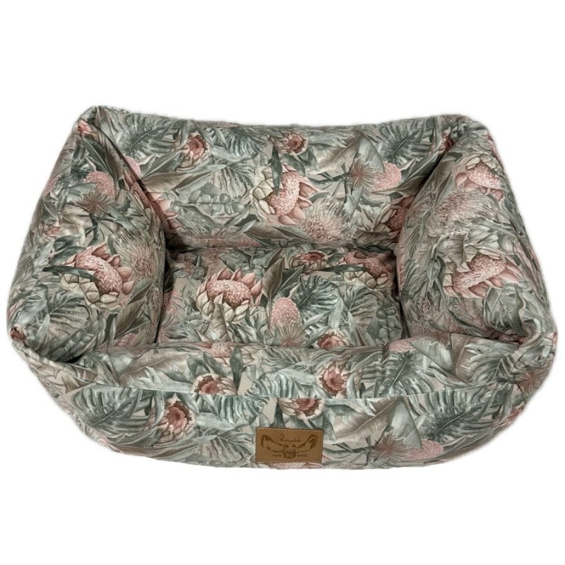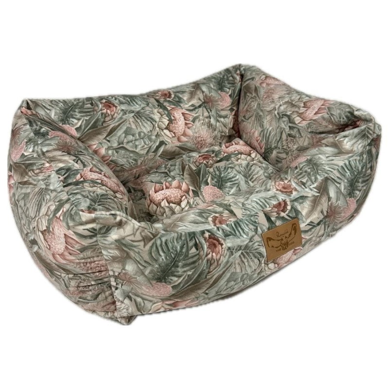 Wykonane z najwyższej jakości, trwałych materiałów tapicerskich typu welur, nasz kojec dla dużego psa zapewnia trwałość i odporność na codzienne zużycie. Dodatkowo materiał ten zadrukowany został naszymi autorskimi wzorami, co nadaje całości niesamowitego designu. Dzięki temu legowiska na żywo prezentują się bardzo stylowo i przypominają bardziej designerski mebel niż zwykły kojec dla psa, płynnie integrując legowisko z Twoją przestrzenią życiową.