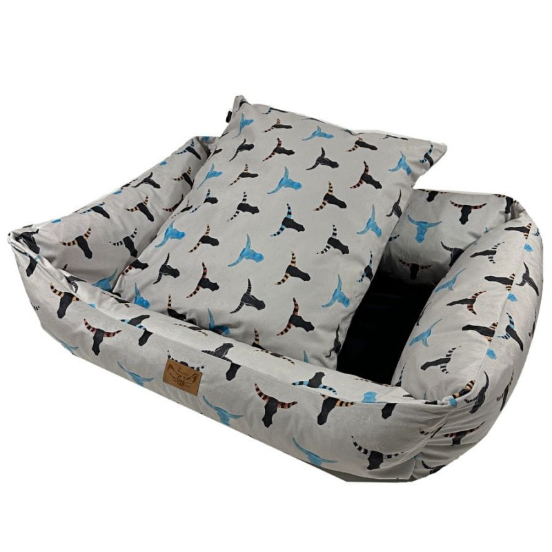 Wykonane z najwyższej jakości, trwałych materiałów tapicerskich typu welur, nasz kojec dla dużego psa zapewnia trwałość i odporność na codzienne zużycie. Dodatkowo materiał ten zadrukowany został naszymi autorskimi wzorami, co nadaje całości niesamowitego designu. Dzięki temu legowiska na żywo prezentują się bardzo stylowo i przypominają bardziej designerski mebel niż zwykły kojec dla psa, płynnie integrując legowisko z Twoją przestrzenią życiową.