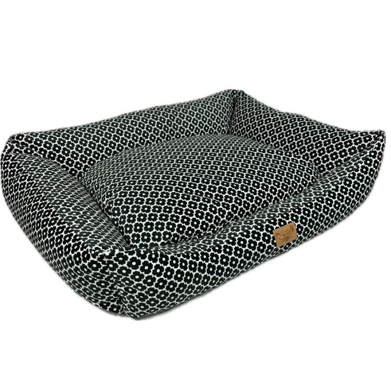 Niezwykle stabilne oraz funkcjonalne Legowisko dla dużego psa z kolekcji BLOSSOM. Kojec wykonany został z najwyższej jakości wytrzymałej tkaniny welurowej zadrukowanej autorskim wzorem.