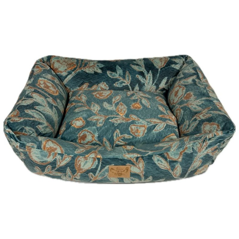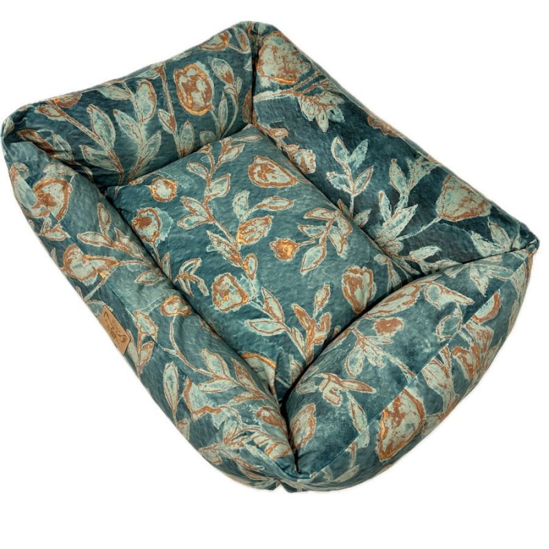 Wykonane z najwyższej jakości, trwałych materiałów tapicerskich typu welur, nasz kojec dla dużego psa zapewnia trwałość i odporność na codzienne zużycie. Dodatkowo materiał ten zadrukowany został naszymi autorskimi wzorami, co nadaje całości niesamowitego designu. Dzięki temu legowiska na żywo prezentują się bardzo stylowo i przypominają bardziej designerski mebel niż zwykły kojec dla psa, płynnie integrując legowisko z Twoją przestrzenią życiową.
