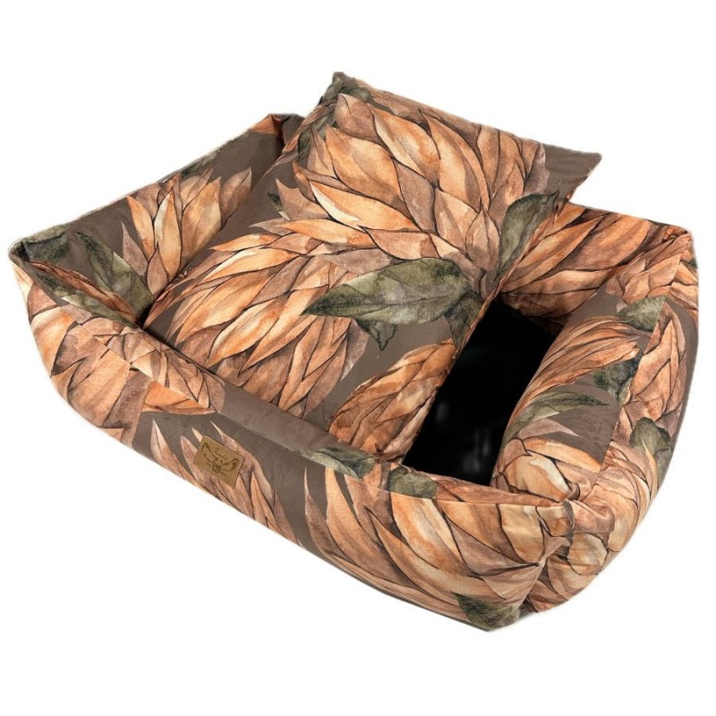 Wykonane z najwyższej jakości, trwałych materiałów tapicerskich typu welur, nasz kojec dla dużego psa zapewnia trwałość i odporność na codzienne zużycie. Dodatkowo materiał ten zadrukowany został naszymi autorskimi wzorami, co nadaje całości niesamowitego designu. Dzięki temu legowiska na żywo prezentują się bardzo stylowo i przypominają bardziej designerski mebel niż zwykły kojec dla psa, płynnie integrując legowisko z Twoją przestrzenią życiową.