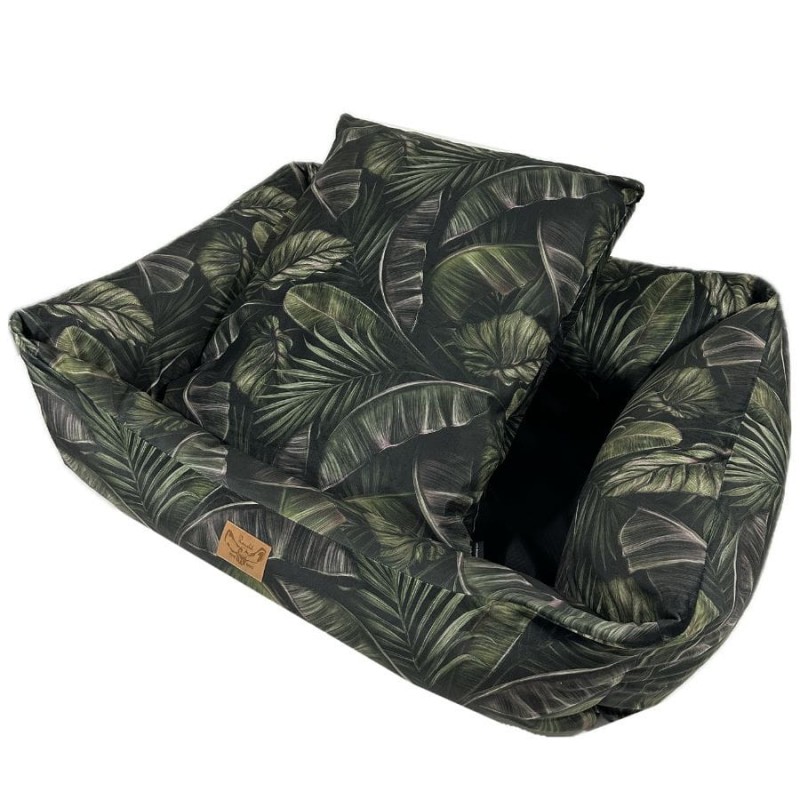 Wykonane z najwyższej jakości, trwałych materiałów tapicerskich typu welur, nasz kojec dla dużego psa zapewnia trwałość i odporność na codzienne zużycie. Dodatkowo materiał ten zadrukowany został naszymi autorskimi wzorami, co nadaje całości niesamowitego designu. Dzięki temu legowiska na żywo prezentują się bardzo stylowo i przypominają bardziej designerski mebel niż zwykły kojec dla psa, płynnie integrując legowisko z Twoją przestrzenią życiową.