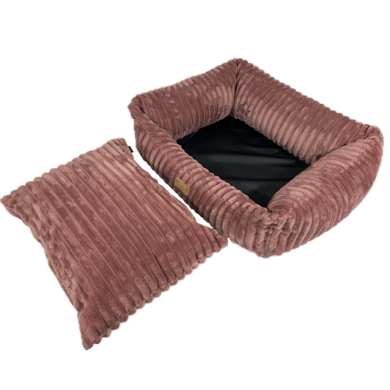 Konstrukcja łóżka jest zarówno elegancka, jak i praktyczna, ponieważ posiada wyjmowane wszystkie wkłady - ten dolny, jak i wszystkie boczne, które można prać w pralce, co ułatwia zachowanie czystości. Każdy bok posiada osobny, wytrzymały zamek, dzięki któremu w mgnieniu oka można wyciągnąć wybrany wkład. Również dolna poducha posiada wszyty zamek, dzięki czemu wkład w niej jest również wyciągalny. W każdym legowisku dla psa zastosowaliśmy antypoślizgowy spód, dzięki czemu całość się tak łatwo nie przesuwa ani nie rysuje podłogi.