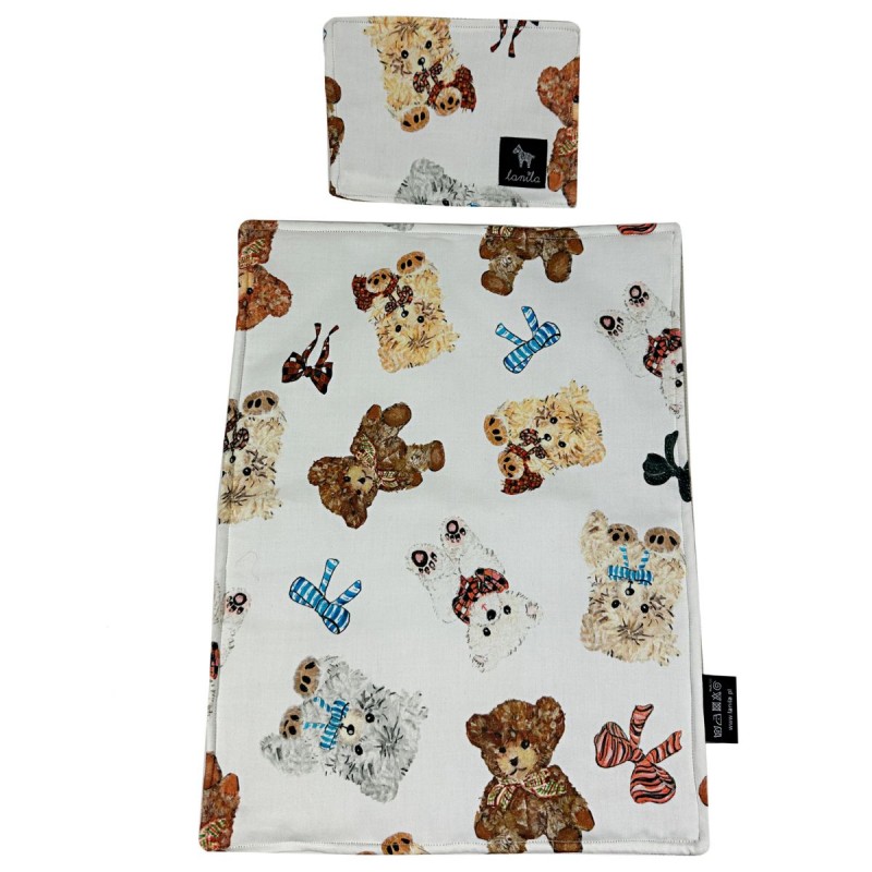 Komplet pościeli dla lalek marki Lanila uszyty został z najwyższej jakości bawełny z nadrukowanymi autorskimi wzorami oraz z pikowanym, bardzo miękkim velvetem. Wypełnienie to bardzo cienka antyalergiczna, silikonowa włóknina.