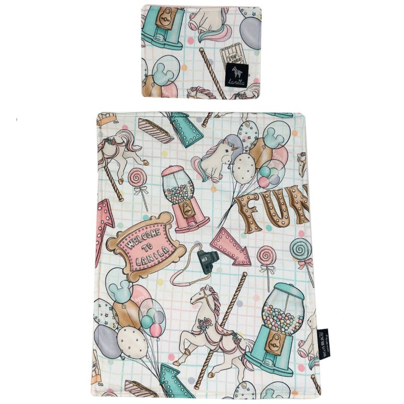 Komplet pościeli dla lalek marki Lanila uszyty został z najwyższej jakości bawełny z nadrukowanymi autorskimi wzorami oraz z pikowanym, bardzo miękkim velvetem. Wypełnienie to bardzo cienka antyalergiczna, silikonowa włóknina.