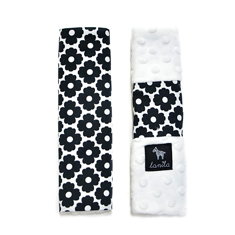 Ochraniacze do pasów White Blossom zapinane są z pomocą mocnych rzepów – założenie ich na pas zajmuje zaledwie kilka chwil. Oryginalny nadruk w biało-czarne kwiaty będzie idealny dla każdego małego chłopca lub dziewczynki – piękne ochraniacze pozwolą przywyknąć przyszłemu kierowcy do bezpiecznego zapinania pasów. Ochraniacz na pas po zapięciu ma wymiary 8x22 cm i stabilnie utrzymuje się na miejscu. Miękki i puszysty polar Minky amortyzuje i izoluje ciało dziecka od sztywnych pasów, gwarantując wygodę nawet w czasie długich spacerów w wózku.