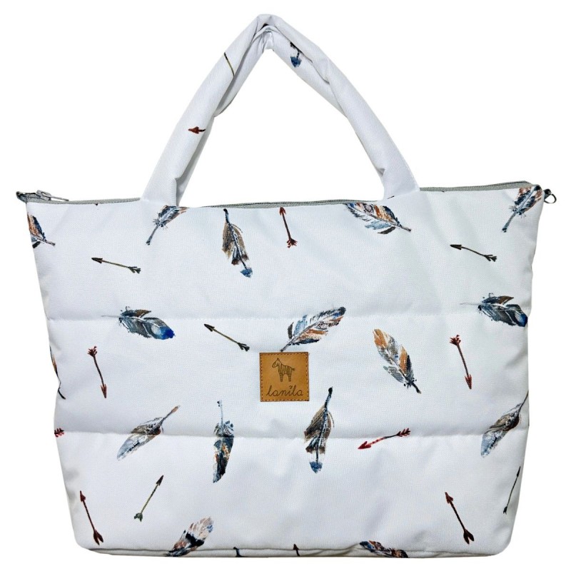 Torebka do wózka Lanila, zapinana na wygodny zamek, jest bardzo pojemna, a w środku posiada kilka praktycznych przegródek. Do dwóch z nich wszyliśmy gumkę, która stabilizuje butelki i utrzymuje je w pozycji pionowej. Inna, głębsza przegródka może posłużyć jako kieszonka na portfel lub komórkę.