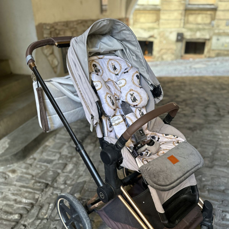 Torba z zewnątrz wykonana została z mięciutkiej i eleganckiej dzianiny Velvet,a z wewnątrz z certyfikowanego ortalionu, który jest całkowicie wodoodporny! Między warstwami Velvetu i ortalionu wszyliśmy puszyste wypełnienie, dzięki czemu całość jest bardzo miękka, a zarazem bardzo solidna i stabilna. Mocowanie, dzięki swojej prostocie pasuje do każdego rodzaju wózka – czy to pojedynczego czy bliźniaka, a montaż trwa zaledwie kilka sekund!