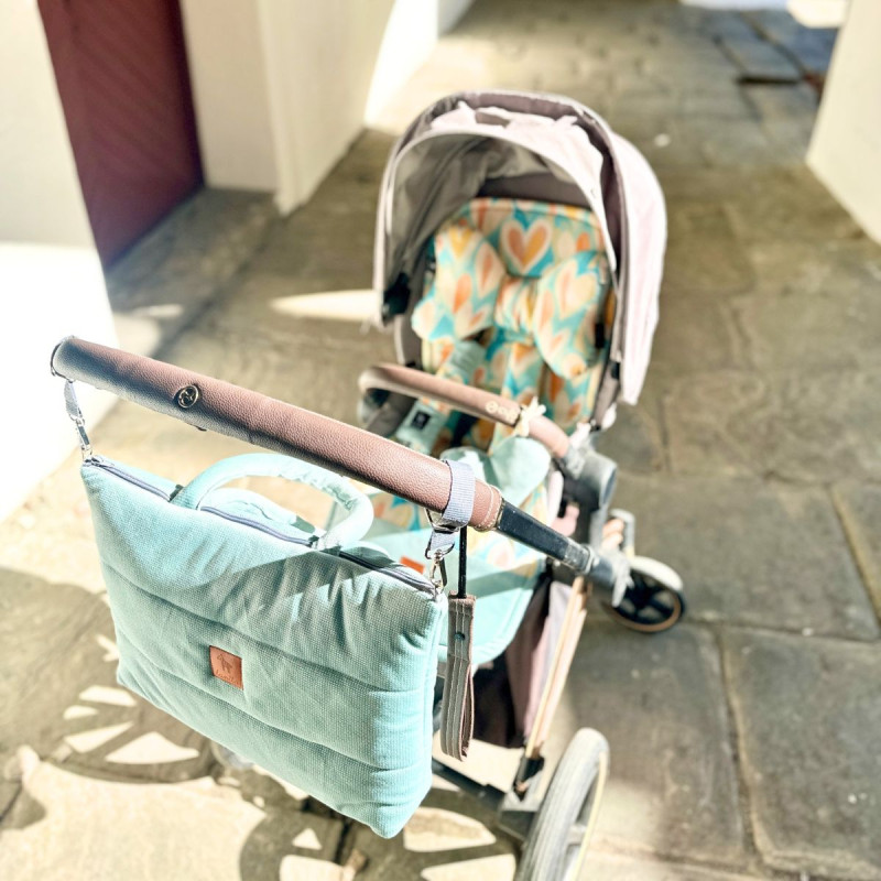 Pakowna torba do wózka z kolekcji Velvet. Torba organizer do wózka ma wymiary 45x35 cm, więc pomieści wszystkie akcesoria niezbędne podczas spaceru, a dzięki funkcjonalnym przegródkom utrzyma je również w porządku.