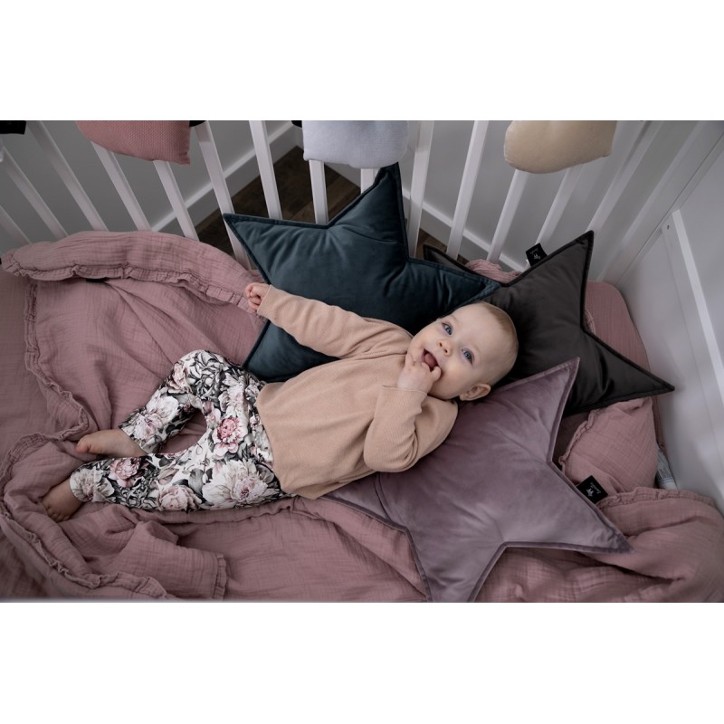 Poduszka Star z kolekcji Lanila Home idealnie sprawdzi się jako piękna ozdoba każdego pokoju, zarówno dziecięcego jak i sypialni czy salonu. Dzięki wykorzystaniu jednolitych, stonowanych kolorów oraz uniwersalnemu kształtowi, pasuje do każdego pokoju. Dodatkowo gwiazdka może posłużyć jako ulubiona poduszka do spania czy przytulania. Poduszka wykonana została z zupełnie nowej tkaniny – bardzo przyjemnego w dotyku weluru, dzięki czemu jest niesamowicie miękka i delikatna. Wypełniona została antyalergiczną włókniną silikonową.