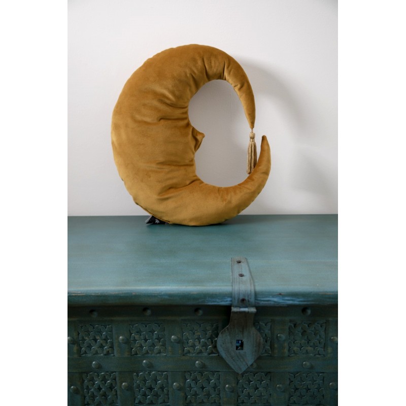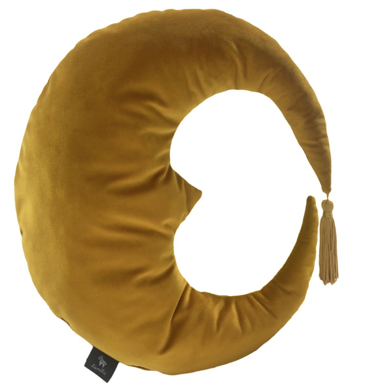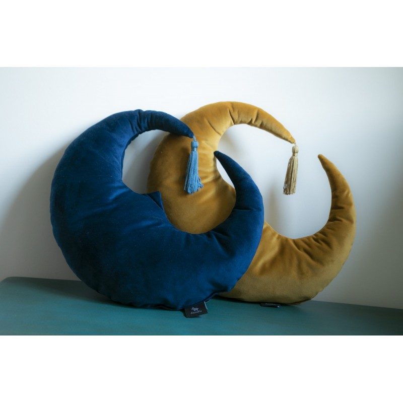 Poduszka dekoracyjna z kolekcji Lanila Home idealnie sprawdzi się jako piękna ozdoba każdego pokoju dziecięcego. Dzięki wykorzystaniu jednolitych, stonowanych kolorów oraz niebanalnego, bajkowego kształtu, pasuje do każdego pokojowego stylu czy designu. Dodatkowo księżyc może posłużyć jako ulubiona poduszka do spania czy przytulania. Poduszka wykonana została z zupełnie nowej tkaniny – bardzo przyjemnego w dotyku weluru, dzięki czemu jest niesamowicie miękka i delikatna. Wypełniona została antyalergiczną włókniną silikonową.