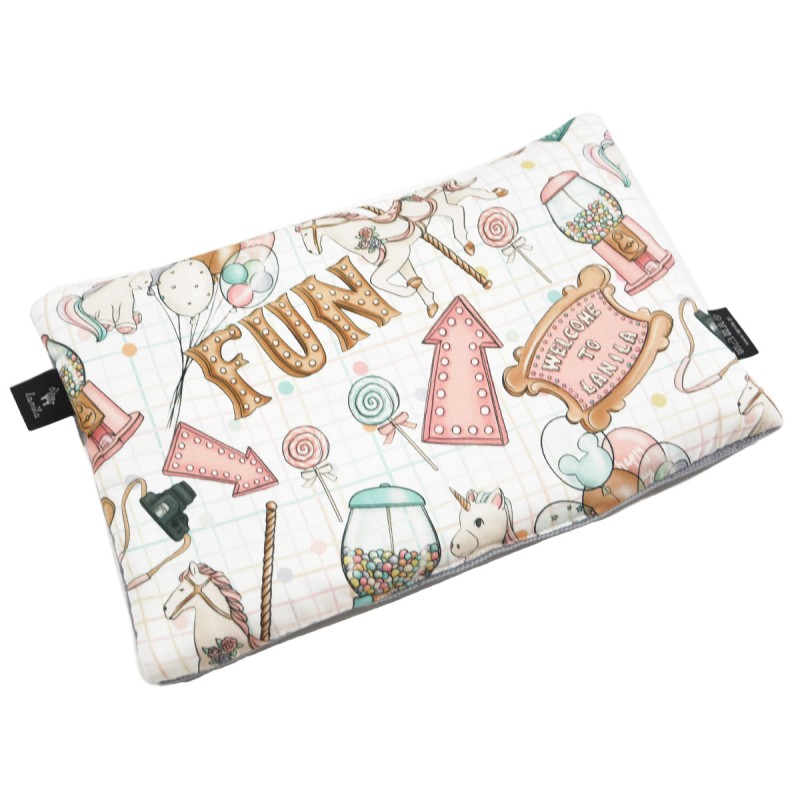 Poduszka dla dziecka Velvet z jednej strony pokryta została bardzo miękką satynową bawełną z trwałym nadrukiem, z drugiej, delikatną dzianiną Velvet.