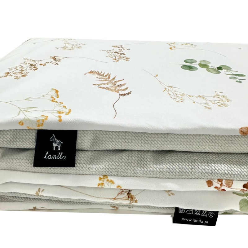 Niezwykle miękki kocyk Velvet Silver Flora 75x100cm sygnowane logo Lanila. Kocyk wykonany został z wysokogatunkowej bawełny oraz delikatnego w dotyku, eleganckiego Velvetu.