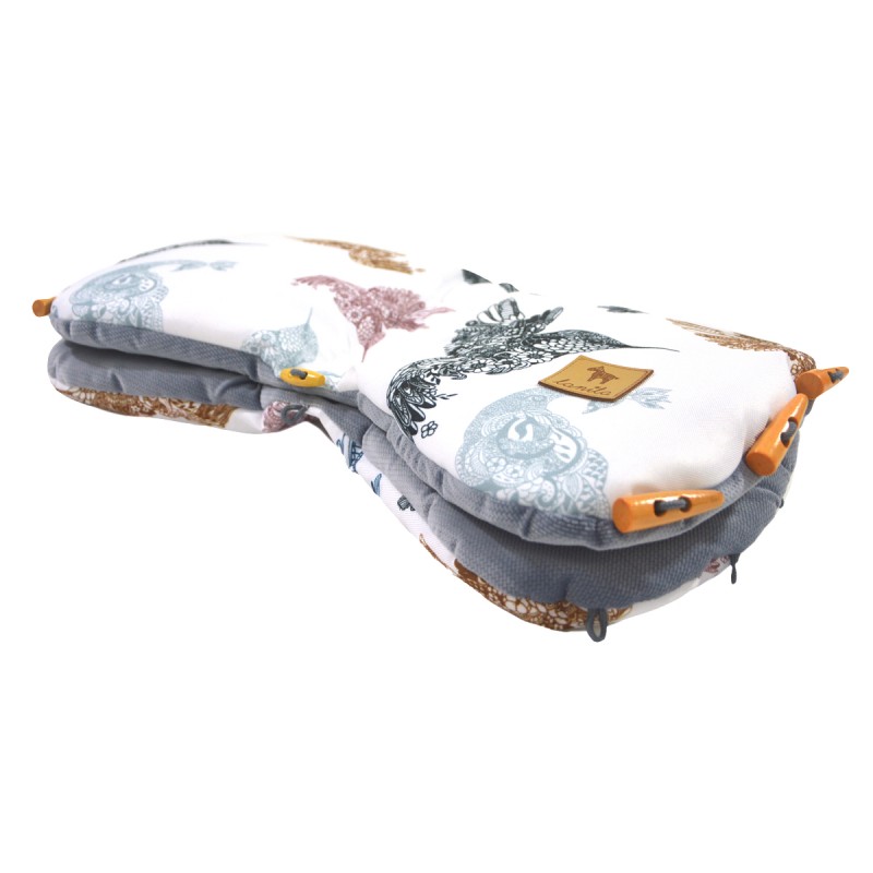 Mufka na wózek Grey Mandala Birds wykonana została z ogromną dbałością o szczegóły i z użyciem materiałów najwyższej jakości. Nie zapomniano również o estetyce – piękne kolory, wyjątkowo modny nadruk i ekologiczne guziki-kołki nadają mufce oryginalnego charakteru i sprawiają, że nawet dziecięcy wózek będzie miał swój unikalny styl.