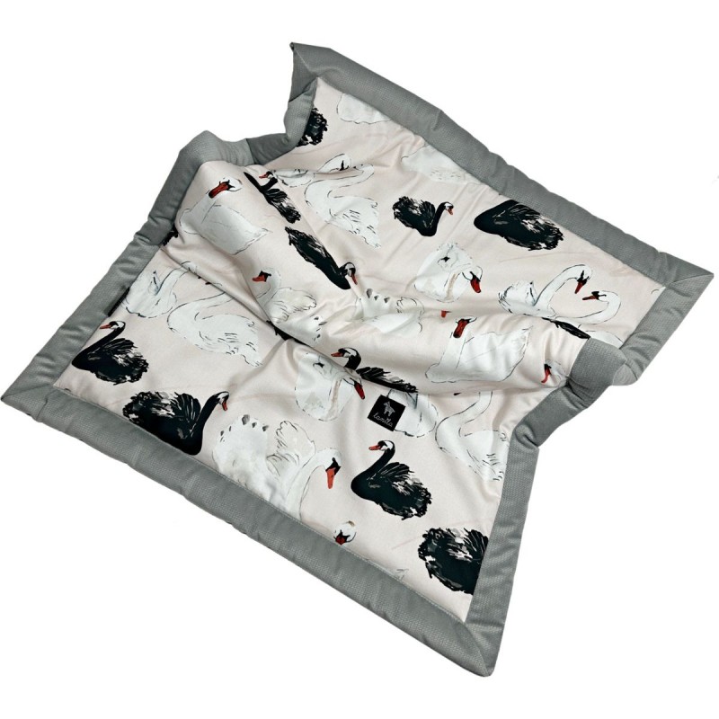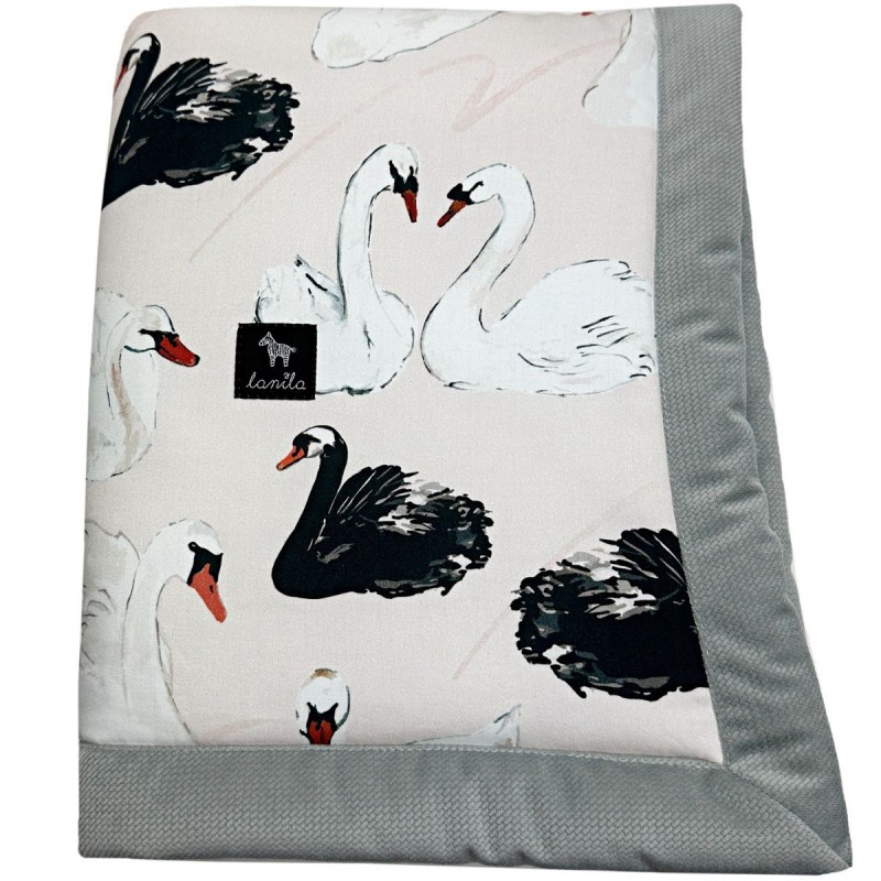 Niezwykle miękki kocyk Velvet Silver Swans 60x70cm sygnowany logo Lanila. Kocyk wykonany został z wysokogatunkowej bawełny oraz delikatnego w dotyku, eleganckiego Velvetu.