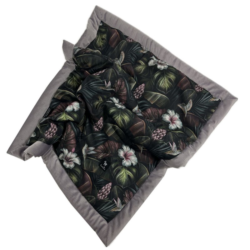 Kocyk Velvet Tropical Jungle idealnie sprawdzi się w roli pierwszej ciepłej kołderki w kołysce lub mniejszym łóżeczku, miękkiej maty do leżenia lub jako otulacz do gondoli w czasie chłodniejszych dni. Kocyki dla dzieci z tej serii wykonane zostały z materiałów najwyższej jakości – bawełna oraz nadruki przebadane zostały pod względem bezpieczeństwa i posiadają certyfikat OEKO-TEX Standard 100.