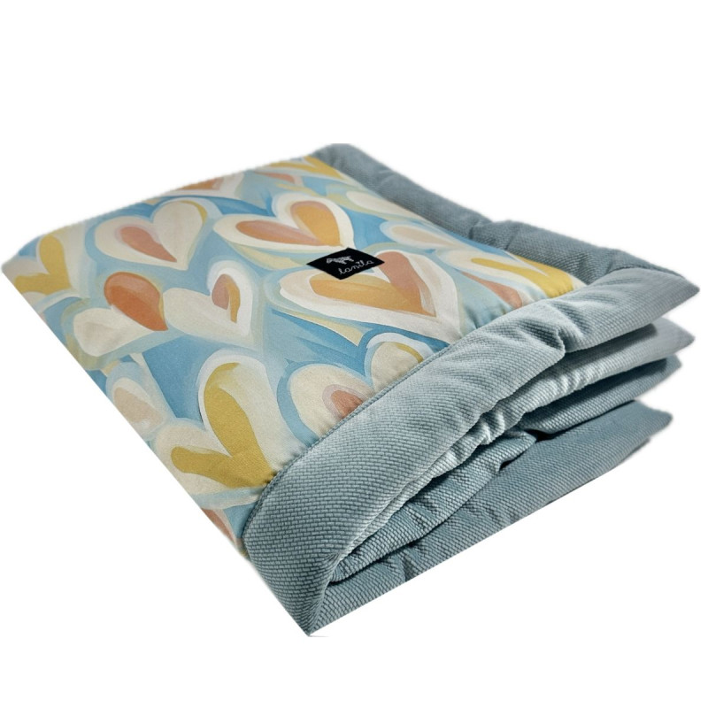 Kocyk Velvet Pastel Amour idealnie sprawdzi się w roli pierwszej ciepłej kołderki w kołysce lub mniejszym łóżeczku, miękkiej maty do leżenia lub jako otulacz do gondoli w czasie chłodniejszych dni. Kocyki dla dzieci z tej serii wykonane zostały z materiałów najwyższej jakości – bawełna oraz nadruki przebadane zostały pod względem bezpieczeństwa i posiadają certyfikat OEKO-TEX Standard 100.