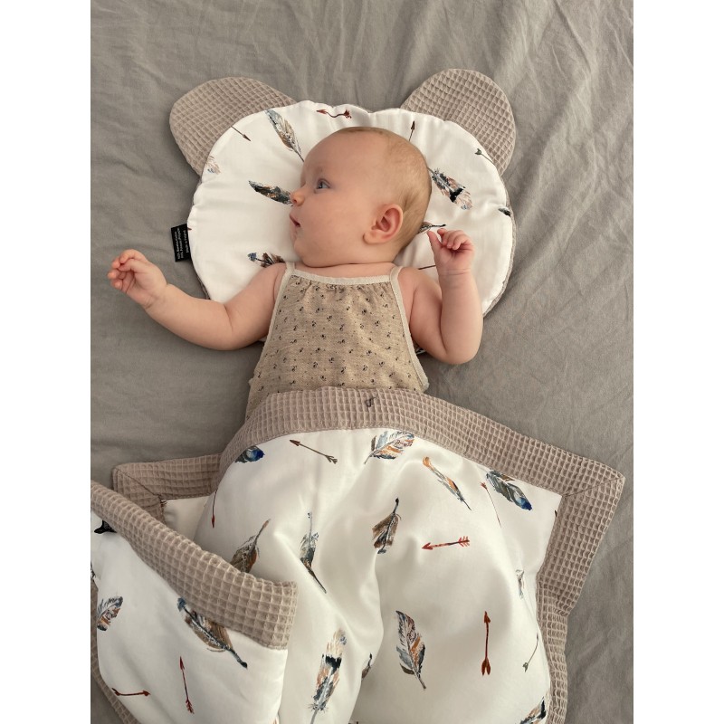 Niezwykle miękki kocyk dla niemowlaka Wafel Taupe Grey Pure 60x70cm. Kocyk dla dziecka wykonany został w 100% z naturalnych tkanin bawełnianych – drukowanej oraz waflowej.
