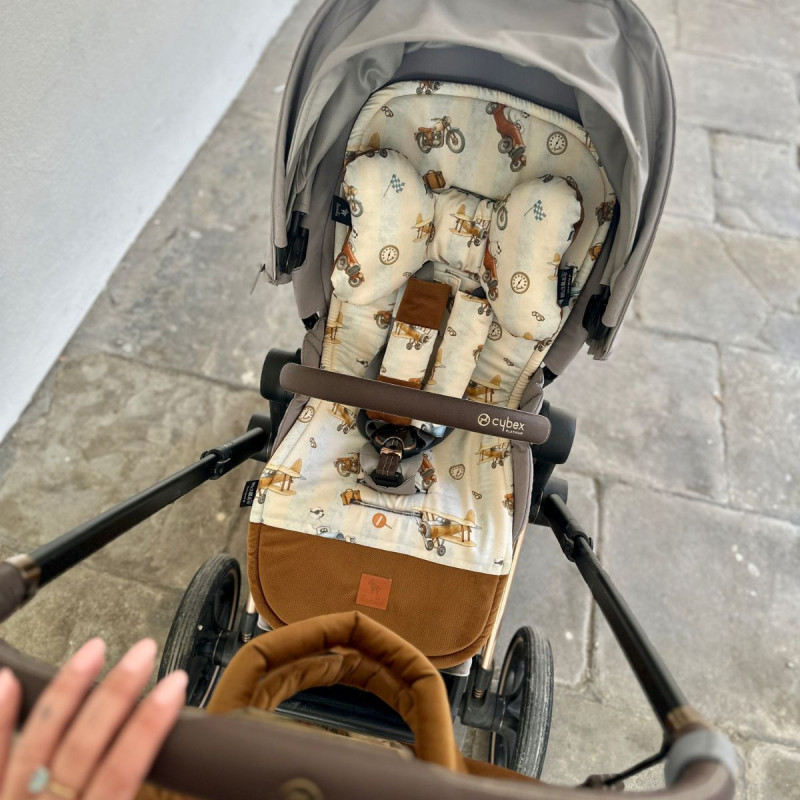 Uniwersalna i praktyczna wkładka do wózka Retro Ride ochraniacze na pasy, pasek oraz bezpieczna poduszka motylek antywstrząsowy – podstawowy zestaw każdej wyprawy. Z produktami marki Lanila każda wycieczka będzie przyjemnością.
