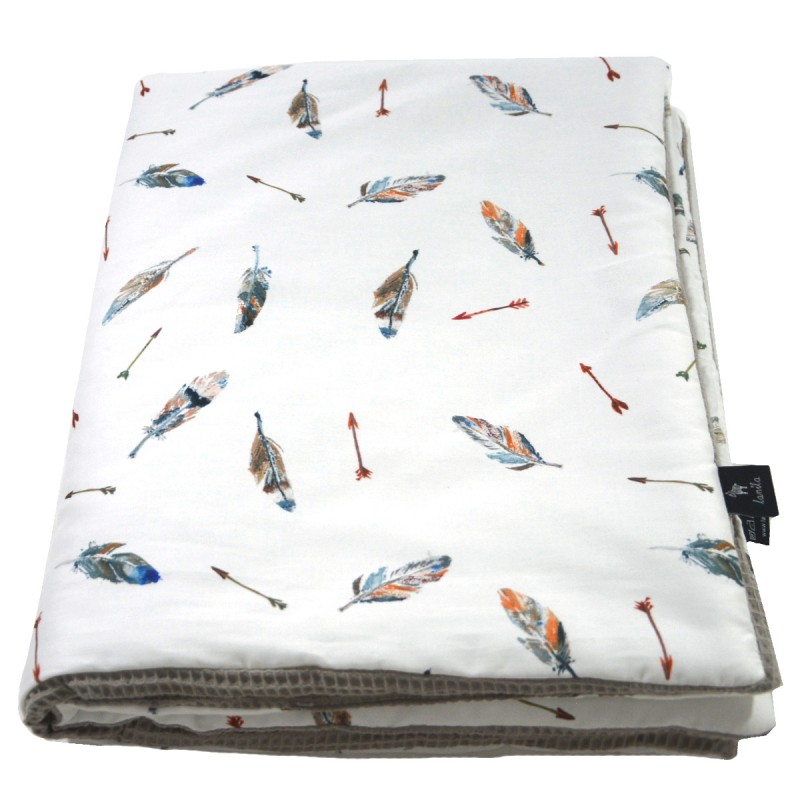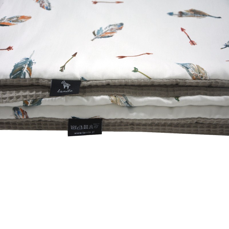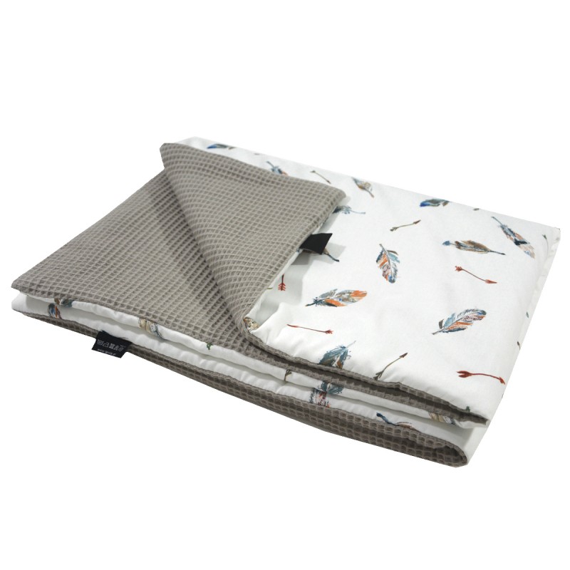 Ciepłą i przytulną miękkość kocyka dla dziecka zapewniają naturalne tkaniny użyte w czasie produkcji.  Jedna warstwa to bawełna Premium, druga strona to wysokiej jakości, bardzo miękki bawełniany wafel. Tkanina waflowa świetnie sprawdza się w akcesoriach dla dzieci i niemowląt, ponieważ jest bardzo delikatna i przyjemna w dotyku.